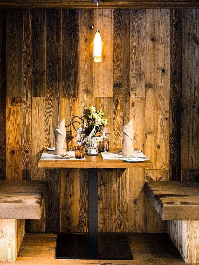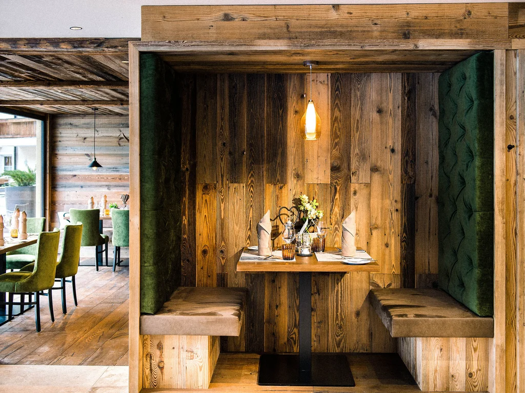 Enjoy the sunrise from your bed in the morning, then get up and sit down at the lovingly set breakfast table. At lunchtime, help yourself at the buffet in the restaurant just as you please. In the afternoon, recharge your batteries with homemade cake, snacks, and a South Tyrolean “Marende” platter. In the evening, order your favourite à la carte dish to dine on in your chalet or penthouse suite, enjoy a fondue or raclette served right there, or savour the exquisite six- to seven-course dinner in the elegant atmosphere of your gourmet hotel’s restaurant in South Tyrol.