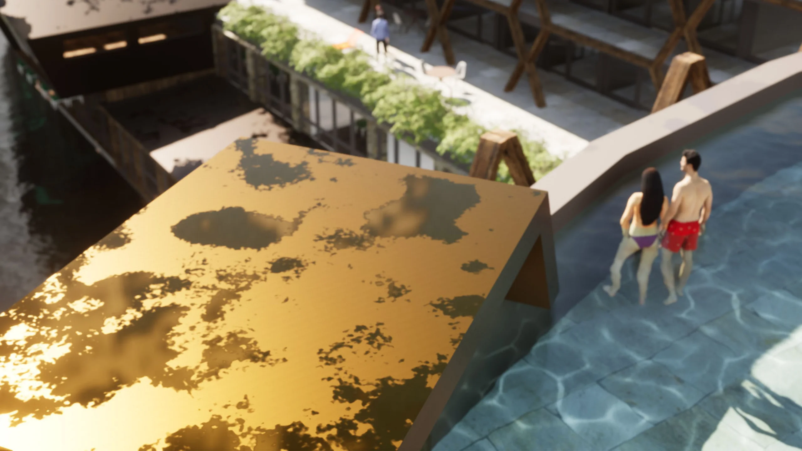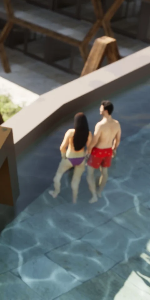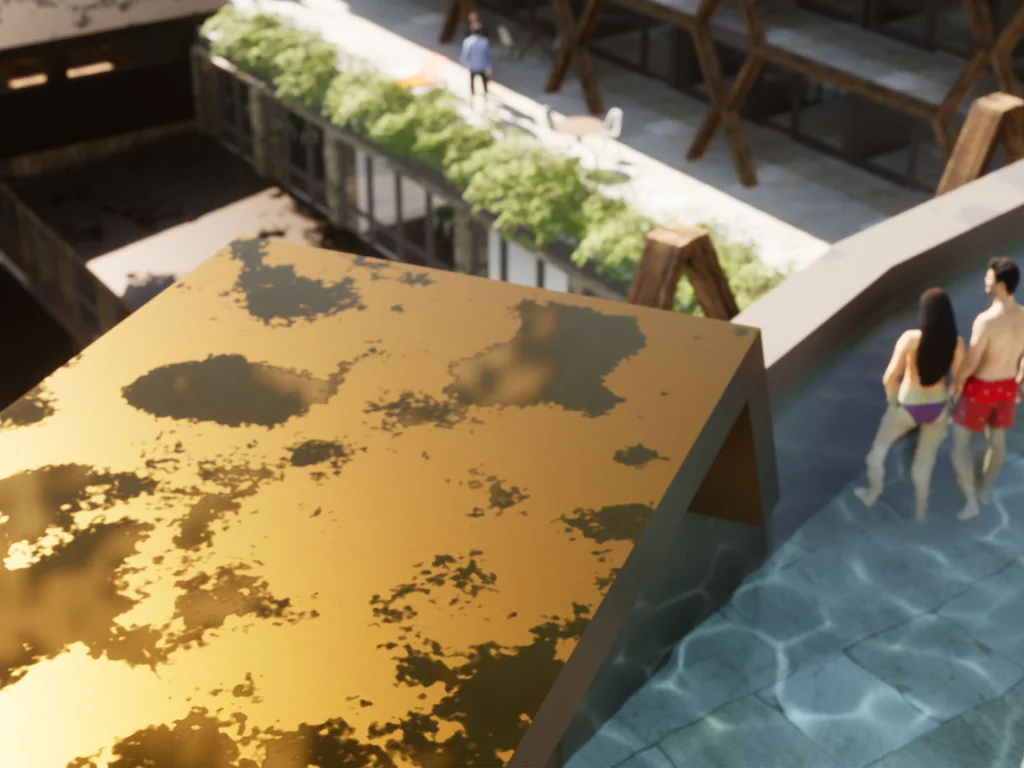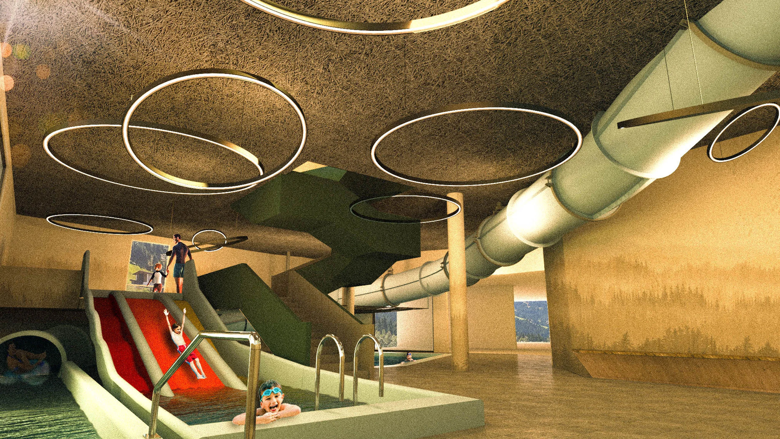- Gentle rainbow slide with our mascot Alpi acting as a water-spray feature in the baby and toddler pool