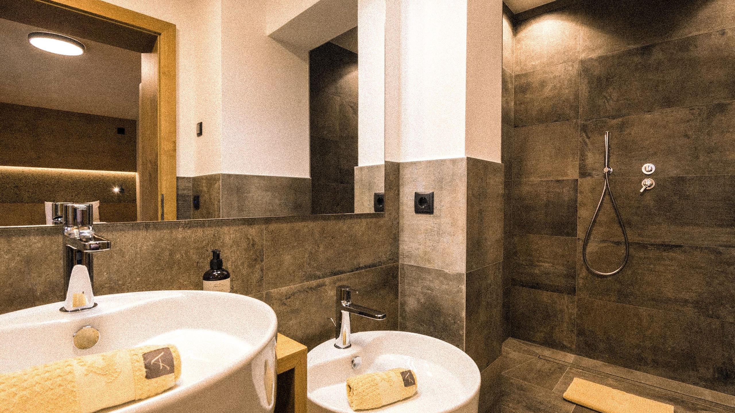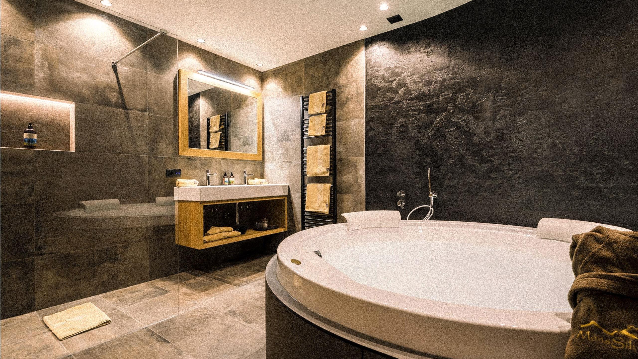 • Bagno con idromassaggio, doccia effetto pioggia e lavabo doppio