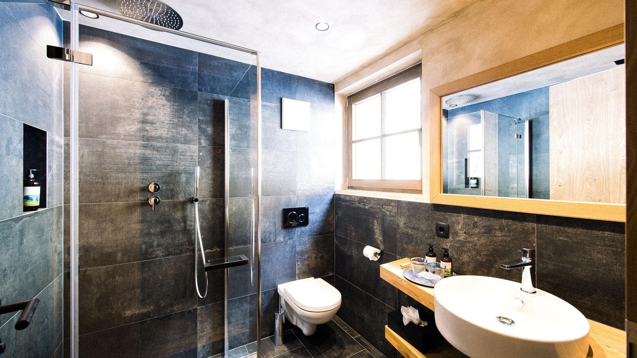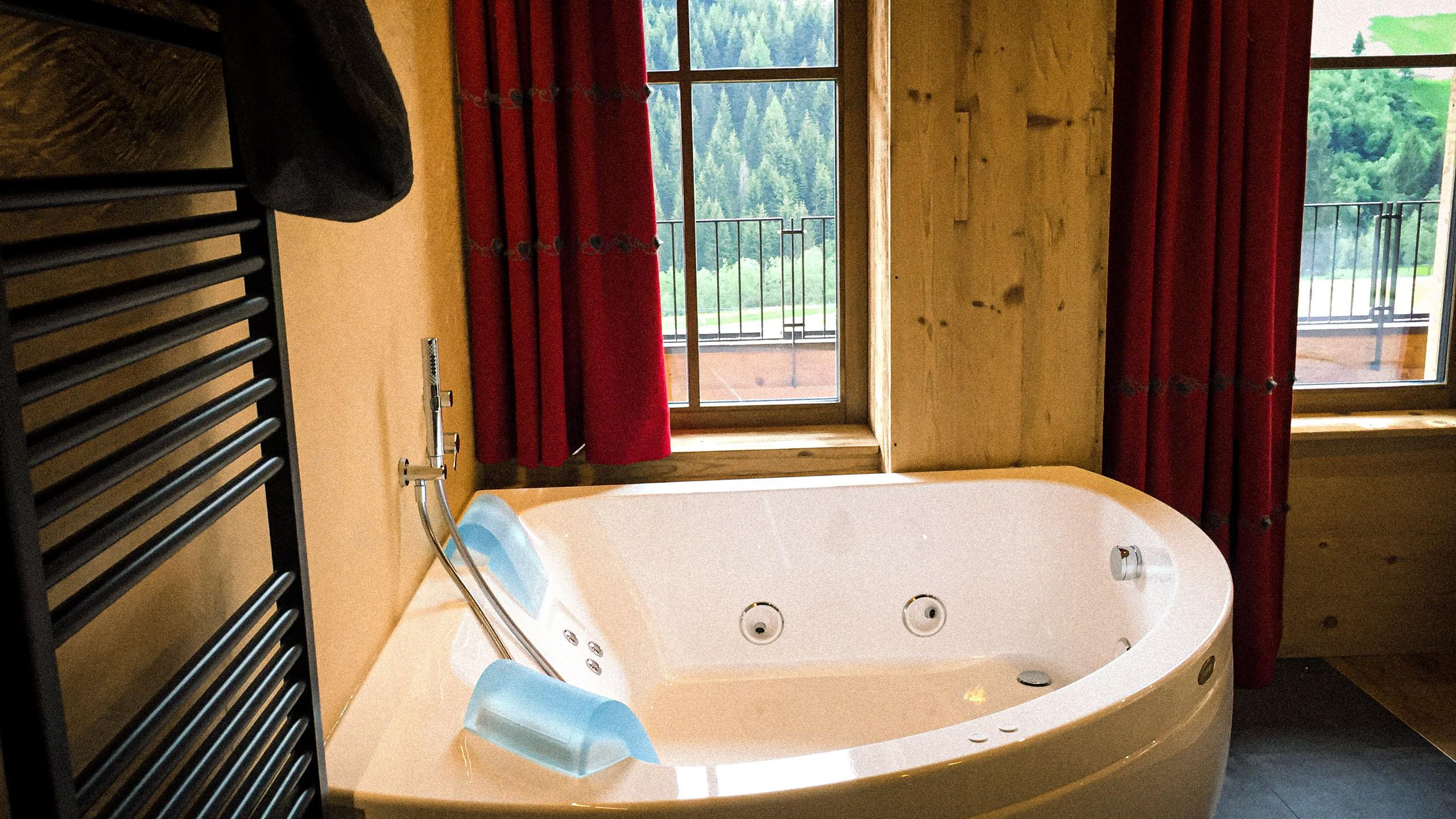 • spa privata nello chalet con hot tub e lettini relax sulla terrazza soleggiata, sauna finlandese, doccia di coppia e vasca con funzione idromassaggio.