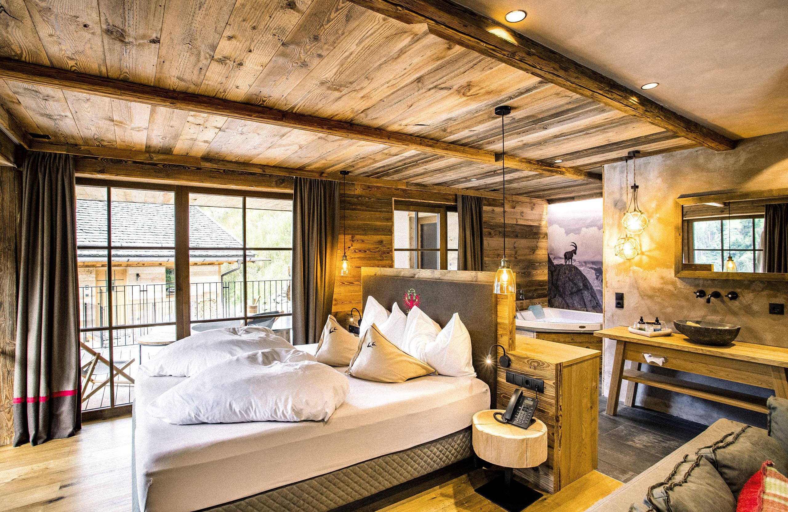 • Private Spa im Chalet mit Hot Tub und Kuschelliegen auf der Sonnenterrasse, finnischer Sauna, Pärchendusche und Badewanne mit Whirlfunktion